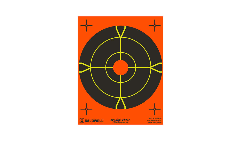 Caldwell Orange Peel Targets let you see hits on the target with dual color flake-off technology that makes your hits look like colorful explosions. If your shot happens to miss the bullseye, you will know exactly where your bullet strayed instantly. The high contrast orange background and black target make acquisition through the scope easy, even at long distances. No need for staples or push pins, these targets feature an adhesive back that sticks to almost any surface. Pasters are included in each pack to repair the targets for even more use.
