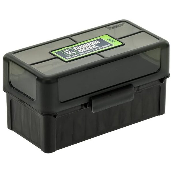 The Frankford Arsenal Hinge-Top Ammo Boxes are constructed from high-density polymer which provides maximum durability and longevity. The hinge-top design prevents the lid from inadvertently closing, which in turn extends the life of the ammo box. The Hinge-Top Ammo Boxes accommodate common-sized (1″ x 2-5/8″) printer labels.