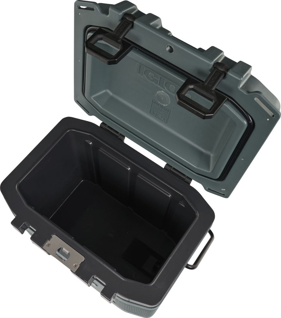 A key member of our always-up-for-adventure Trailmate Series, this compact yet spacious 25-quart Trailmate ice chest will help invigorate your journey. Super rugged — thanks to its bold, sturdy construction — with long-lasting ice retention and extra-handy features (bottle opener, lockable lid, cup holders, drain plug…), this is the American-made hardside cooler that should never miss out on your outdoor fun. The heavy-duty blow-molded construction provides advanced durability, while the extra-thick 1.5 inch foam-insulated walls & insulated lid provide extended ice retention. The first Igloo cooler to feature the Sure-Lock™ rubber latches that make it a cinch to fasten with two fingers & provide a secure closure to lock in the cold.