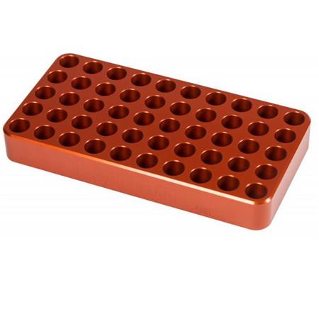 Lyman’s Deluxe Anodized Aluminum Loading Blocks are made for precision reloaders who want their equipment to be as high quality as the ammunition that they produce. The blocks are CNC milled from a solid billit of 6061-T6 aluminum to tight tolerances for a close fit to specific cartridges, unlike the common one-size-fits-all plastic blocks. The blocks are made in three sizes to fit most common rifle head sizes and will hold 50 rounds. Blocks come with stick-on rubber non-slip feet to keep them from sliding on your bench.